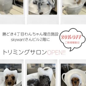 勝どき4丁目わんちゃん複合施設SKYWAN!さんビル2階にあるTrimming Salon DOG LOVESTです ワンちゃんが落ち着いてくつろげる空間で、飼い主さまも何でも相談しやすいサロンづくりを心がけております。 わんちゃんの年齢制限はございません。パピーからシニアまでご利用頂けます。 シニア・トリミングが苦手・持病がある・・などトリマー2人での施術も可能です。ご予約時にご相談下さいませ。
